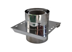 Проходной опорный элемент предназначен для снятия вертикальной нагрузки на дымоход и опорный кронштейн от веса элементов дымохода, расположенных выше его. Устанавливается при высоте дымохода более 12 м от опорного кронштейна. Изготавливается из коррозионностойких марок сталей и элементов керамических труб.