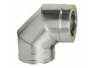 Сэндвич-отвод 90° - используются для смещения оси дымохода, выполненного из двухконтурных элементов. Внутренняя труба изготавливается из жарокоррозионностойких марок сталей толщиной 0,5 или 1 мм, внешняя труба – из коррозионностойкой, либо оцинкованной стали толщиной 0,55 мм. Сэндвич-отводы могут быть различных диаметров. В качестве теплоизолирующего материала для наполнения используется либо БСТВ, либо керамоволокно. Окончания сэндвичных отводов заполняются керамоволокном.