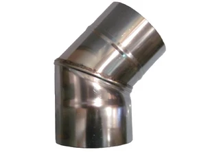 Отвод дымохода одностенный 45° - используется для смещения оси дымохода в одноконтурном исполнении. Изготавливается различных диаметров и исполнений в зависимости от назначения из жарокоррозионостойких марок сталей толщинами 0,5 - 1 мм. Дымоходные трубы изготавливаются в основном из двух марок сталей: 430 и 304.