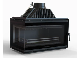 Печь имеет распределенную подачу воздуха: первичный воздух подаётся снизу через колосник и вторичный дожиг через отверстия в верхней часть задней стенки. Также печь оборудована системой «чистое стекло» - это управляемый поток воздуха, направляемый сверху дверцы для обеспечения прозрачности стекла в процессе горения. Также система «чистое стекло» служит для дожига дымовых газов, исполняя функцию вторичного дожига. Первичный регулятор воздуха должен быть полностью открыт на протяжение всего времени розжига (15-20 минут). Во время работы печи при достижении стабильного режима горения с целью экономии топлива первичный регулятор следует закрывать первым. Каминная топка может подключаться к дымоходу с только верхней стороны Топка имеет 2 модификации исполнения – правостороннее и левостороннее. Отличия только внешние, конструктивно оба прибора идентичны и детали топочной камеры, дверки, регуляторы взаимозаменяемы. Обе топки можно топить длинными, до 55 см длиной, дровами.