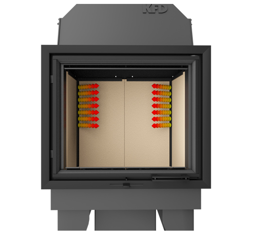Каминная топка KFD ECO iLINE 5172 изготовлена из высококачественной термостойкой стали и облицована внутри шамотными плитами, способными выдерживать высокие температуры и накапливать тепло. Внутренние шамотные вставки подверженные износу широко распространены и просты в замене. Такая конструкция гарантирует надежность использования на протяжении долгих лет. Каминная вставка имеет современную систему двойного сжигания, что увеличивает эффективность сгорания дерева, выбрасывает меньше сажи в дымоходную систему и является более экологичной. Дверка оборудована керамическим стеклом, способным выдерживать температуру до 800 градусов и устойчивым к резким перепадам температуры. Также, благодаря воздушному потоку сверху стекла и пиролизу, стекла остаются чистыми дольше. Плавная регулировка подачи воздуха в топку позволяет контролировать интенсивность и скорость горения.