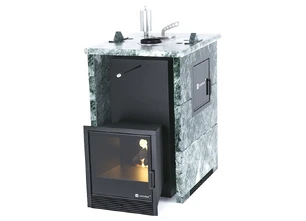 Анапа М2 - банная печь предназначенная для использования в небольшой семейной бане с объемом парной не более 16 м3. Закрытая каменка и встроенный парогенератор гарантирует большое количество легкого пара, огонь, пылающий за панорамным стеклом подарит атмосферу тепла и уюта в вашей бане, Боковой вход в каменку (М2) позволяет провести более быструю ревизию камней, подавать воду на камни, не используя парогенератор. Кожух из природного камня, создаст приятную атмосферу в парной, излучая мягкое тепло.
