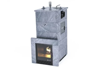 Геленджик М2- банная печь предназначенная для использования в просторной бане с объемом парной не более 35 м3. Закрытая каменка и встроенный парогенератор гарантирует большое количество легкого пара, огонь, пылающий за пано- рамным стеклом подарит атмосферу тепла и уюта в вашей бане, Боковой вход в каменку (М2) позволяет провести более быструю ревизию камней, подавать воду на камни, не используя парогенератор. Кожух из природного камня, создаст приятную атмосферу в парной, излучая мягкое тепло.