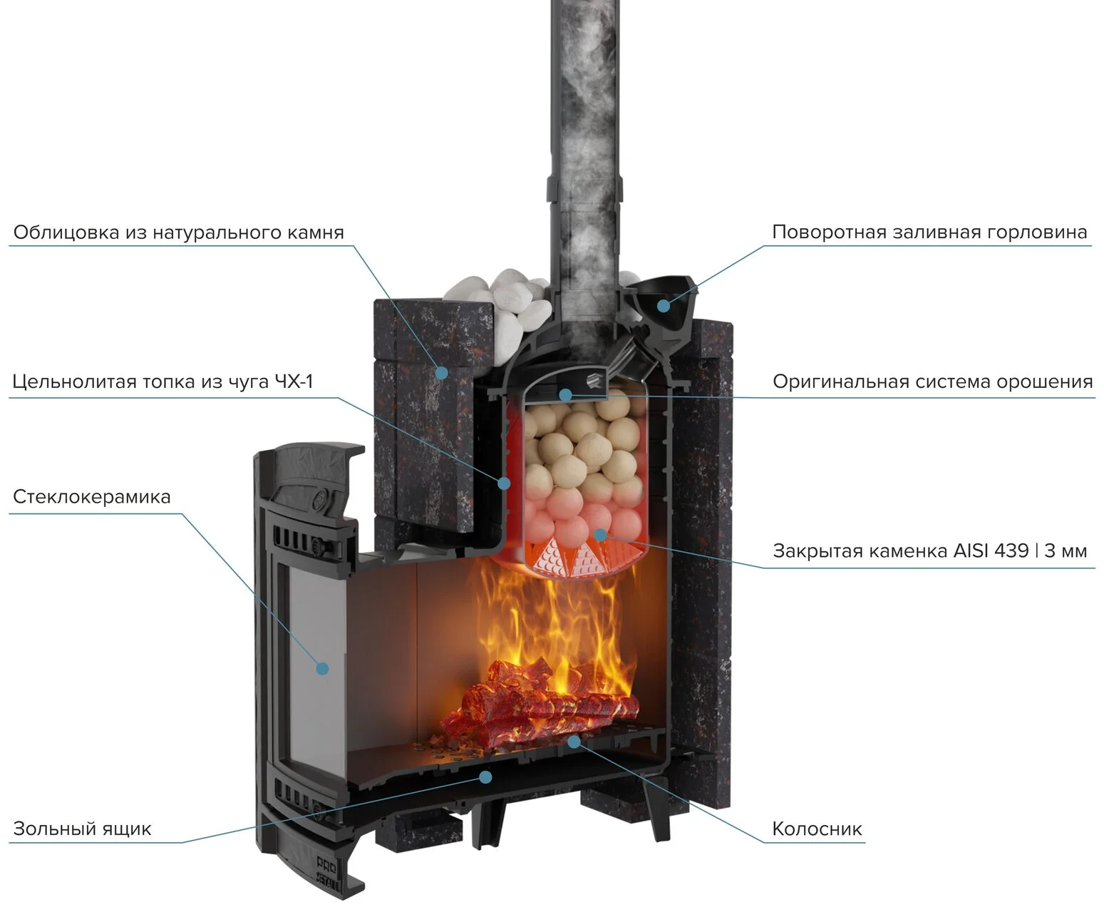 | Материал закрытой каменки | нерж. сталь 3мм (AISI 439) |